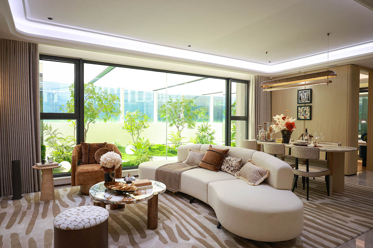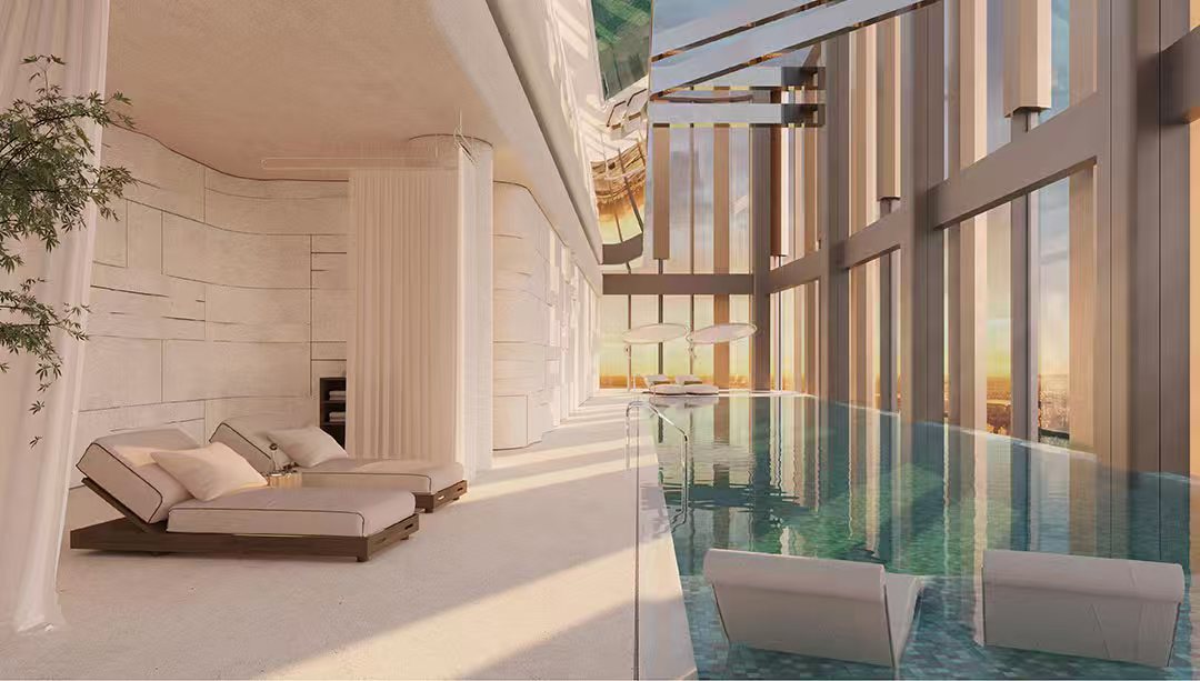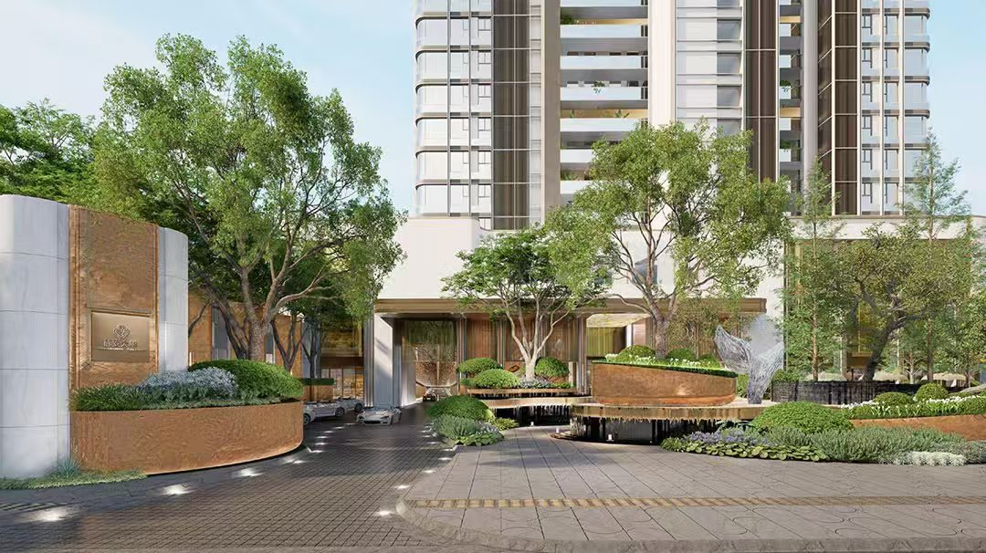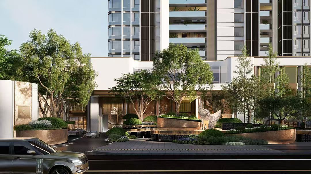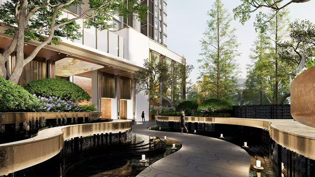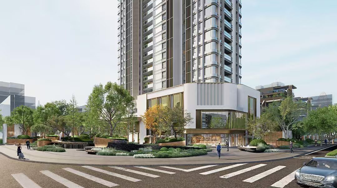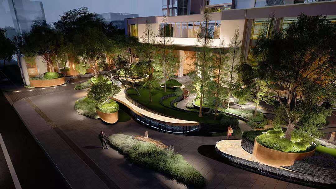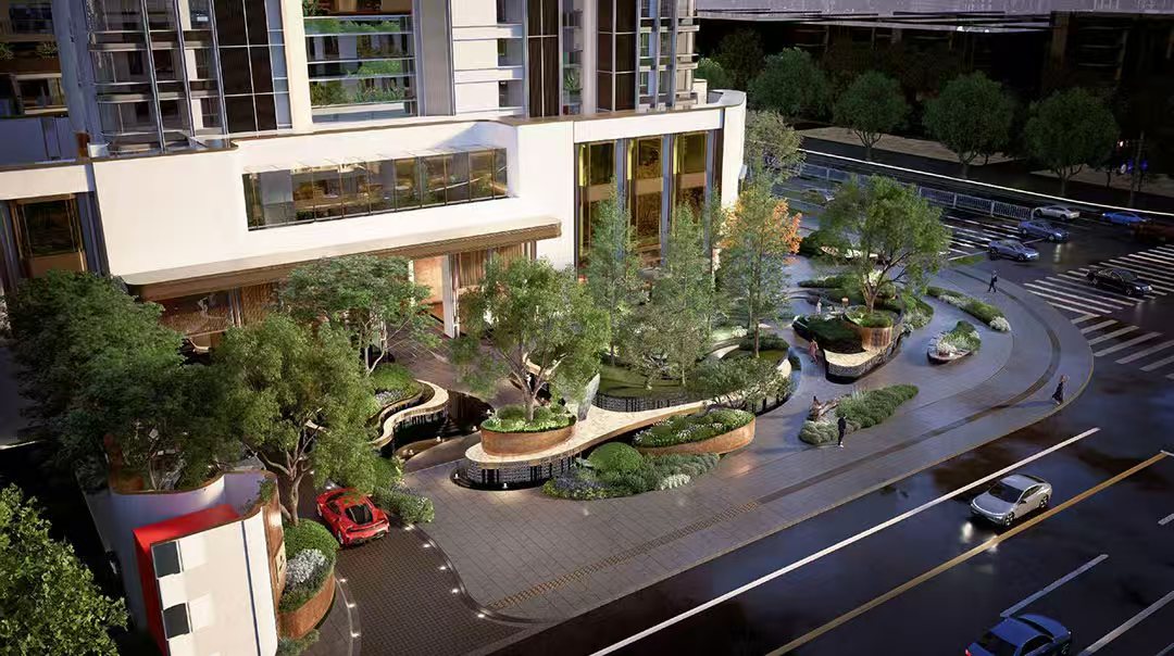 住宅自4层起架于3层商业之上,宛如一座悬浮于城市中的“空中浮岛”。这一设计直接打破传统社区的“割裂感”,实现“楼下繁华商街,楼上静谧生活”的平衡——业主不用绕远路,下楼就能扎进多元商业业态里;而回到楼上,又能瞬间隔绝喧嚣。