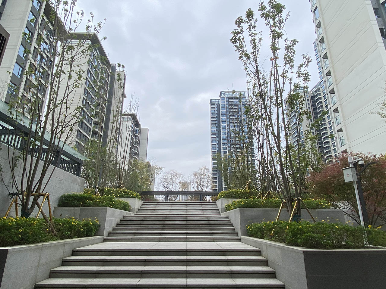 紧密围绕核心景观主轴与社区商业街布局,以一条4米宽的内部环线高效串联各组团楼栋,使社区内交通流线高效、便捷。人车分流设计大大减少了内部车流穿行,显著提升社区内部景观品质与步行安全性。