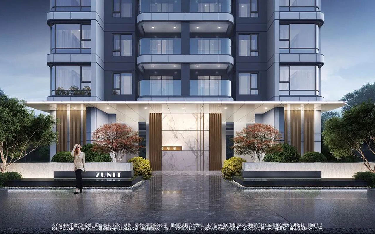 建筑立面采用简洁的现代风格、线条明快、布局对称,营造出时尚、精致、大气的视觉感受。形态丰富的平屋顶设计、考究的造型与协调的色彩,赋予本案生动丰富的城市形态和尊贵的品质感,增添城市气息。