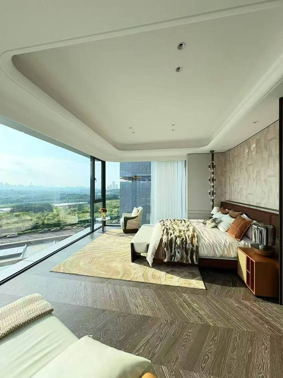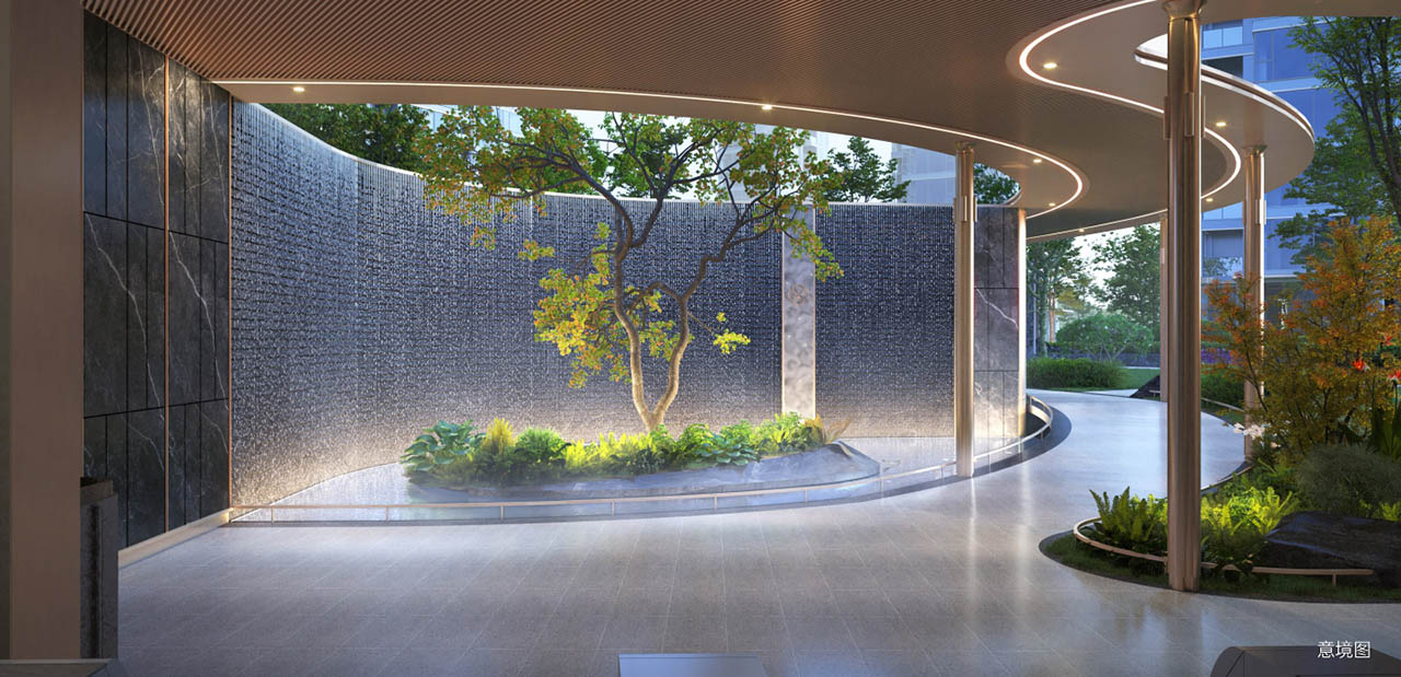 舒朗的布局,不仅让部分户型可直接眺望怡心湖主湖景,为使用全景舱提供了足够的视野支持;更让楼栋间形成两个约2000㎡以上的中庭空间,为景观系统和架空层提供资源基础。