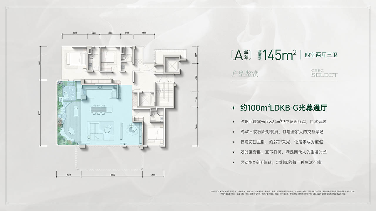生态院落进深约3.5米,打破阳台边界,让空间从观景进阶为造景,缔造生活的从容舒适。