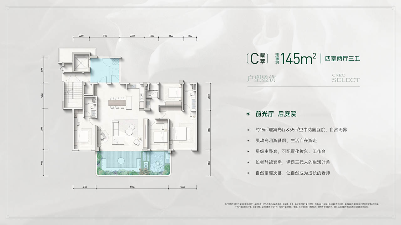 响应国家“好房子”战略,以央企担当,从安全、舒适、绿色、智慧四大核心维度,打造“安心、省心、倾心、舒心、贴心”的五心好房,从自然、空间等进化革新,让自然向上生长,把庭院搬到天空。
