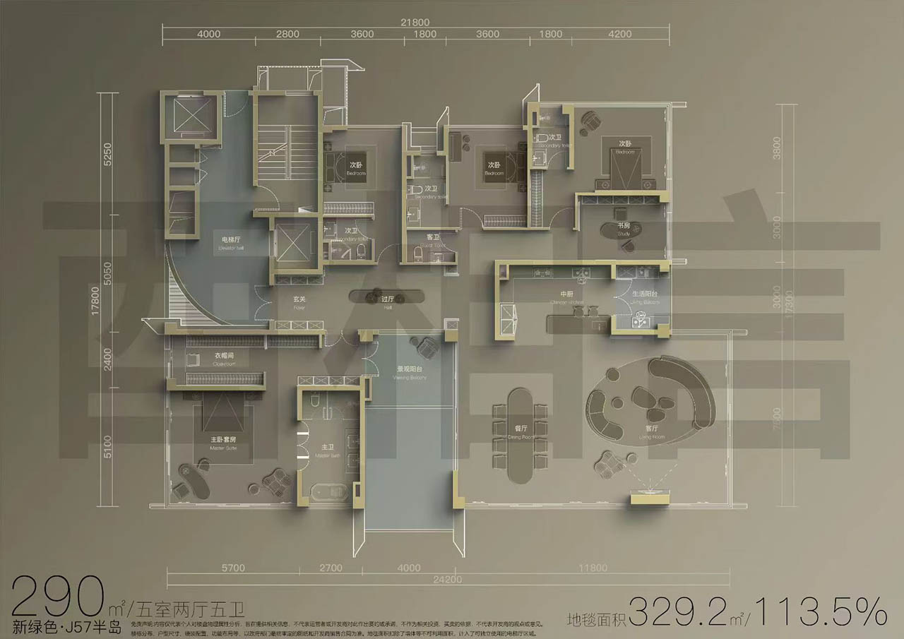190㎡和230㎡的户型层高在3.25米,290㎡户型层高达到3.4米。