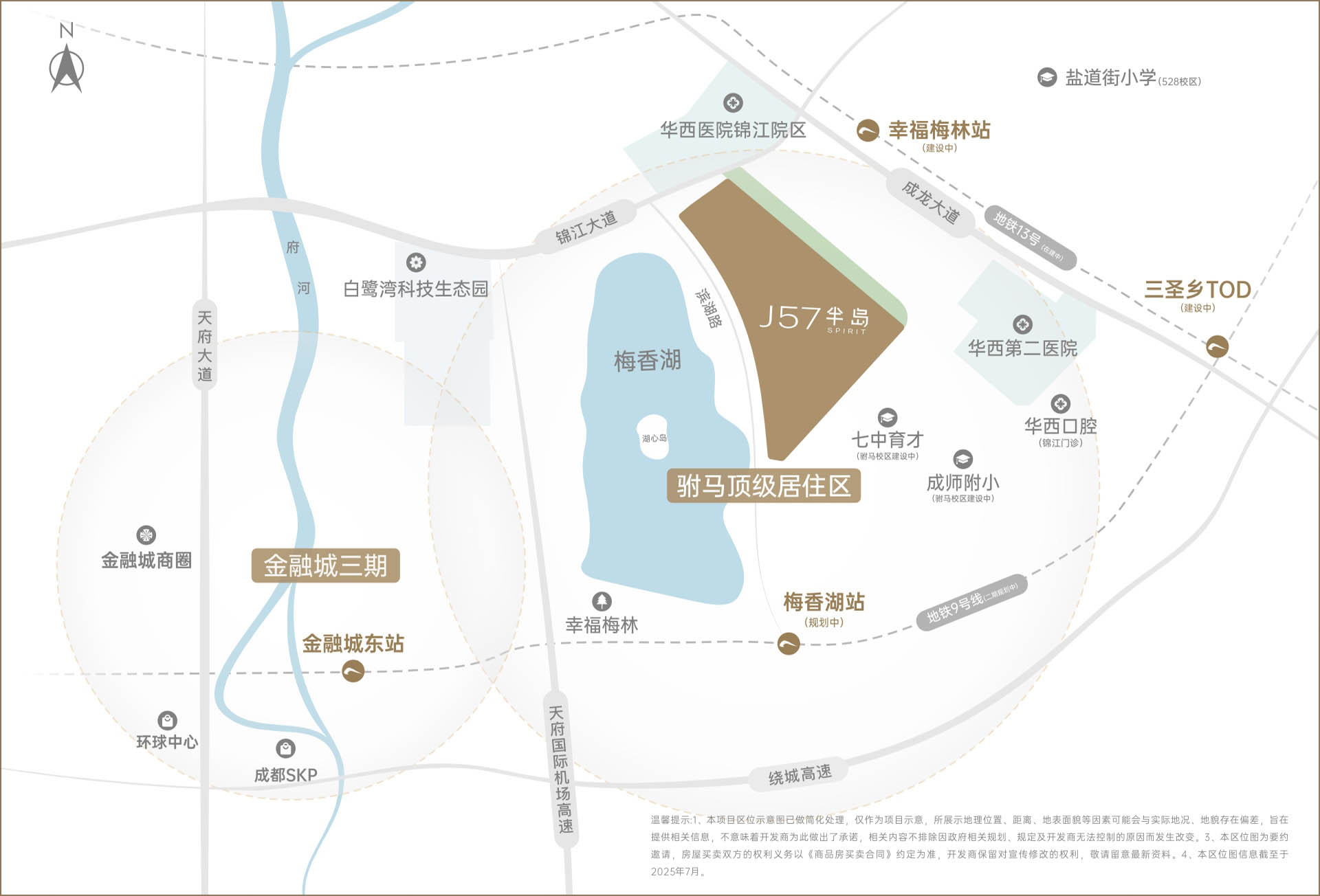 梅香湖,作为继浣花溪、东湖、锦城湖后,成都主城核心区内仅存的一处原生湖泊资源,天然的半岛形状与环城生态区,是产品独特的优势载体,前排楼栋可直接框取湖景,无任何建筑遮挡,近可抬头见湖,远可将整个城南天际线尽收眼底。
