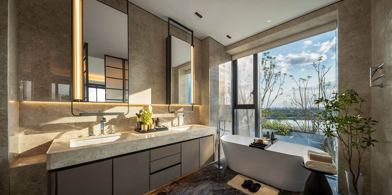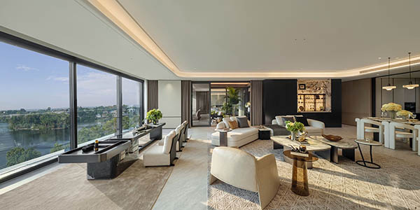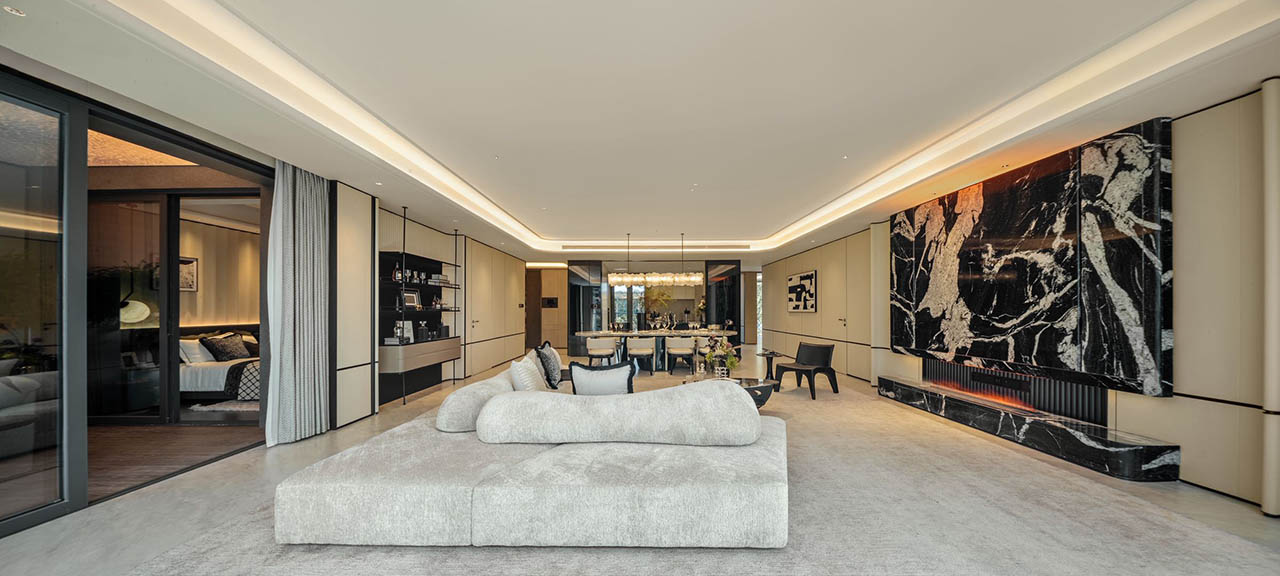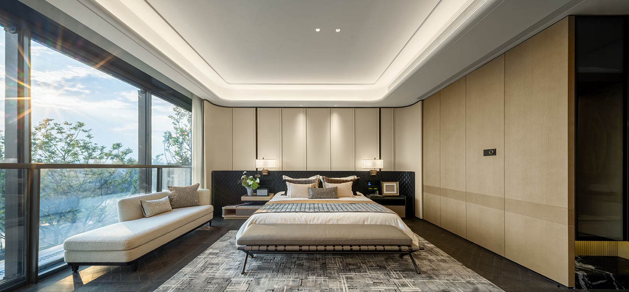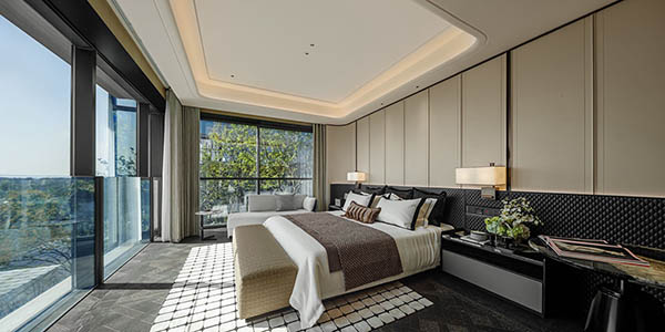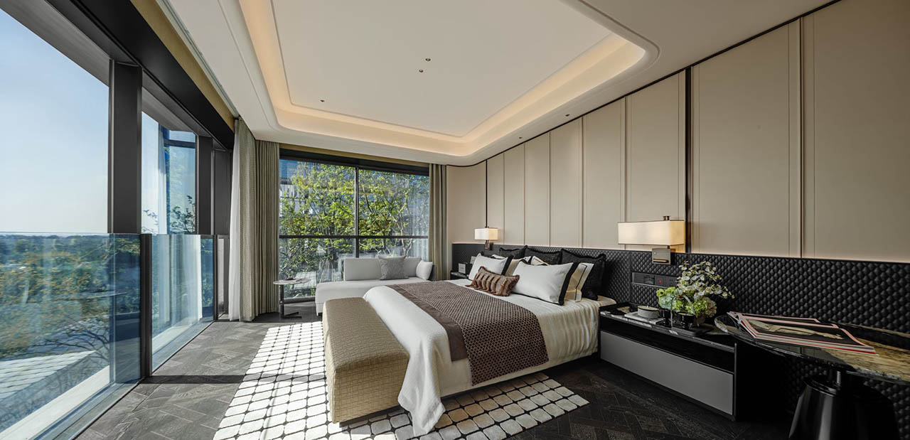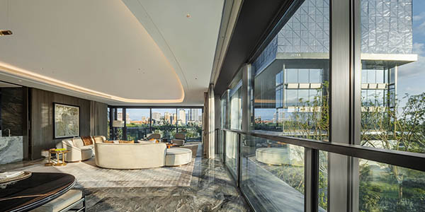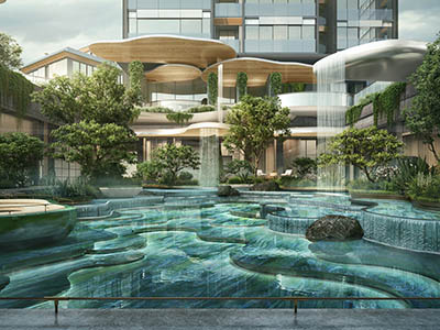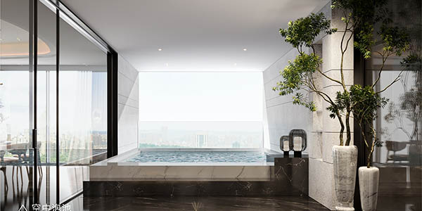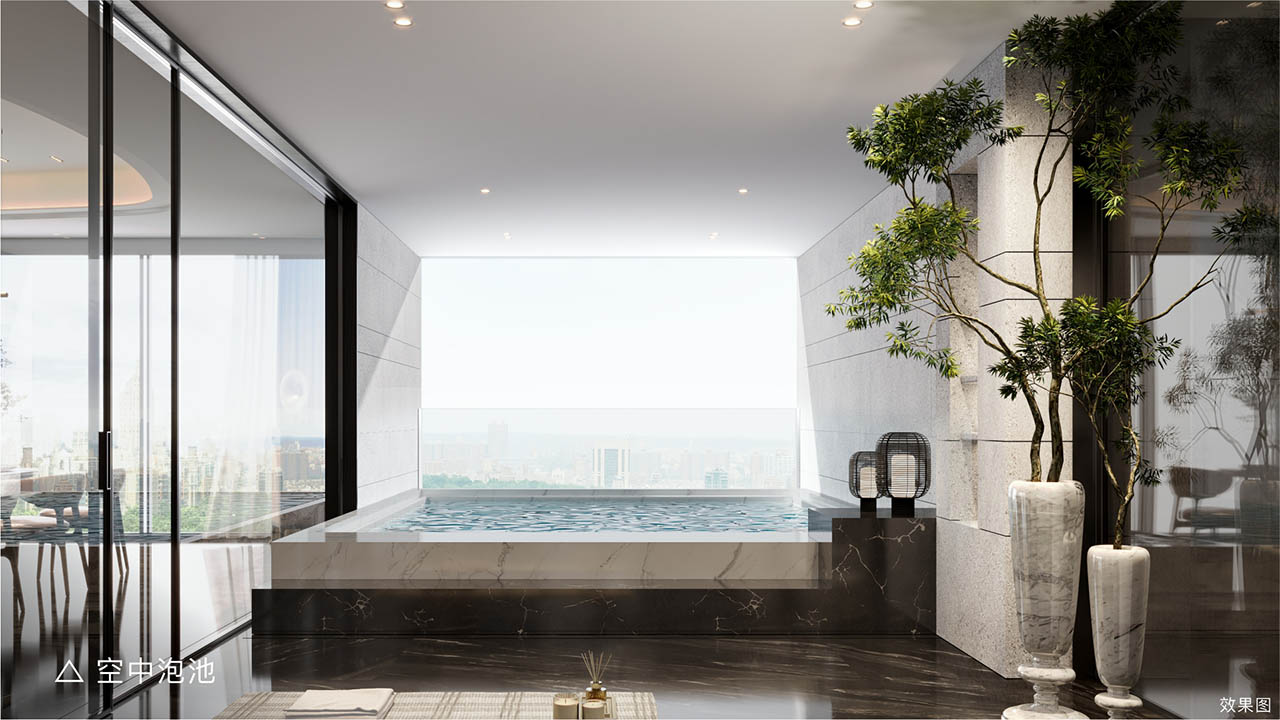 以“生命奢养”为核心功能逻辑,打造了约3600㎡半岛会所体系,包含约2000㎡中心会所+1600㎡架空层泛会所,摒弃了传统会所的属性,强调业主的精神疗愈奢养,打造“悦己”的场所,提供恒温泳池、汤泉池、音波室、SPA室、电影院等。