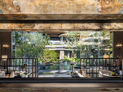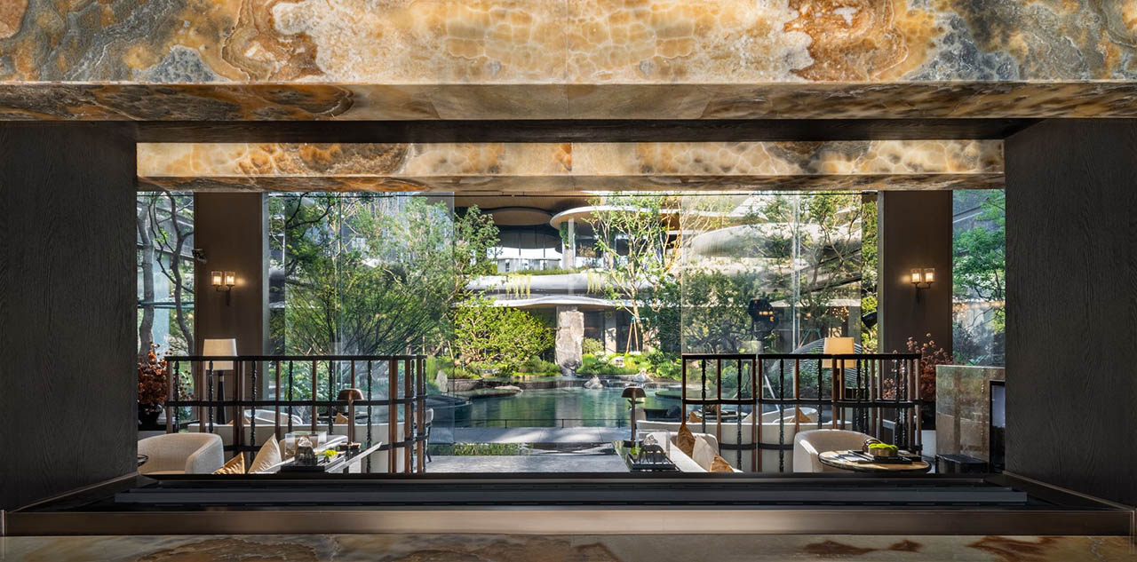 以东方古典文化为魂,择取古籍《山海经》为灵感蓝本,融合“山水奢石”自然脉络,打造了一个约3万㎡沉浸式“山海卷园林”,从“仙居四境”的空间,递进到“仙圃七庭”的细节雕琢,构建出“步移景异、虚实共生”的奇幻园林体系。